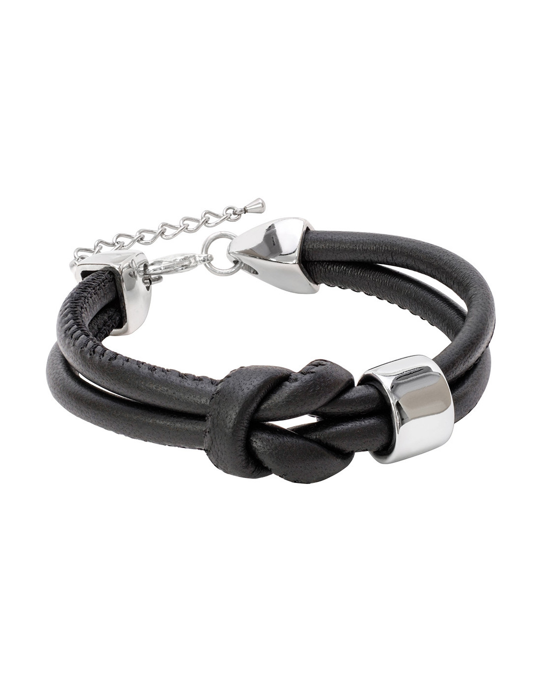 Nowoczesna bransoleta ze skóry naturalnej z błyszczącymi stalowymi elementami. Ponadczasowy dodatek, który pasuje do każdej stylizacji.