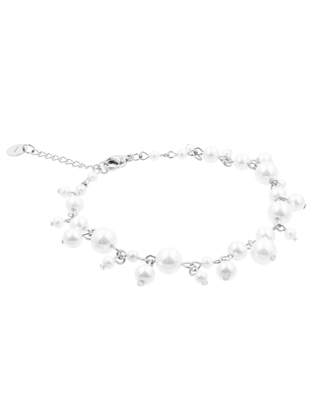 Elegancka bransoleta z pereł typu shell i stali szlachetnej. Klasyczna biżuteria na każdą okazję – śluby, rocznice, prezent dla bliskiej osoby.