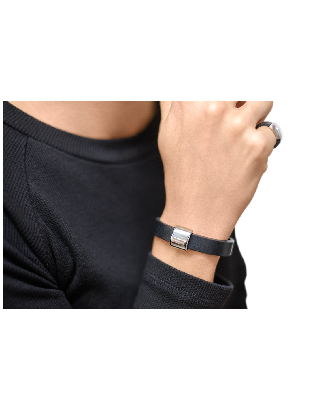 Delikatna, ręcznie wykonana bransoleta ze skóry naturalnej i pozłacanej stali szlachetnej to stylowa propozycja dla kobiet ceniących elegancję i nowoczesną prostotę. Zestawienie czerni z subtelnym złotem nadaje jej wyrafinowanego charakteru i sprawia, że będzie pasować zarówno do codziennych, jak i bardziej oficjalnych stylizacji.