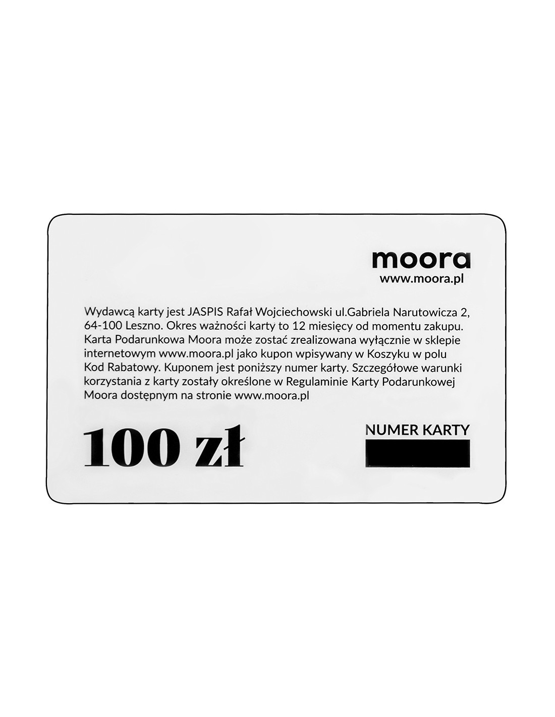 • Kartę można wykorzystać tylko w sklepie internetowym Moora