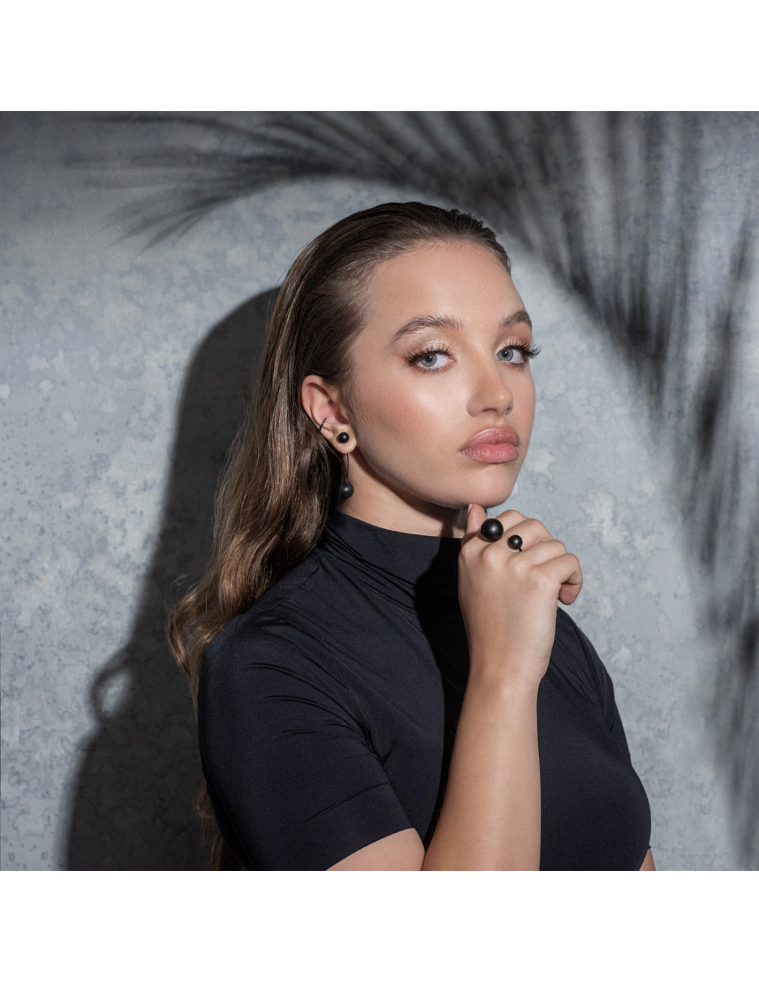 Nowoczesne kolczyki z czarnej, matowej stali szlachetnej to propozycja dla osób ceniących minimalistyczny design i oryginalne dodatki. Subtelne kulki dodają im charakteru, a matowe wykończenie sprawia, że biżuteria wygląda wyjątkowo elegancko i ponadczasowo. Dzięki niewielkiej wadze kolczyki są bardzo wygodne w noszeniu i świetnie sprawdzają się zarówno na co dzień, jak i podczas wyjątkowych okazji. Doskonale komponują się z pierścionkiem o tym samym wzorze, tworząc spójny zestaw biżuterii.