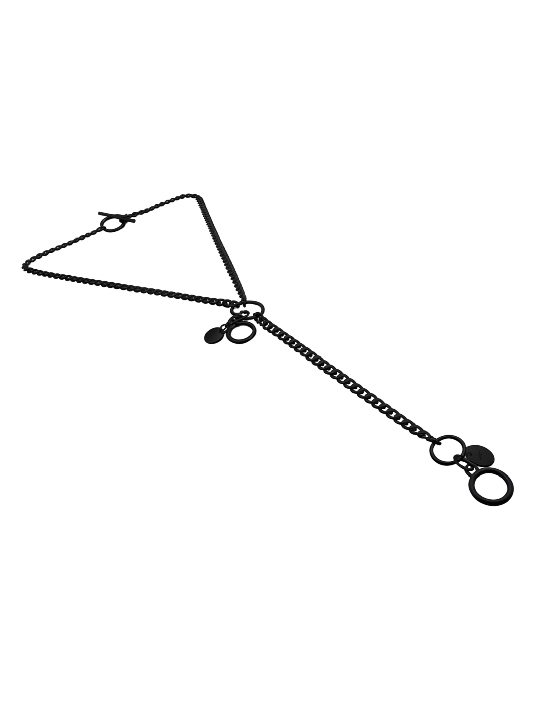 Subtelny, długi łańcuszek z dekoracyjnymi zawieszkami wykonany z najwyższej jakości stali szlachetnej. Idealny dodatek do każdej stylizacji – dostępny w kolorze złotym, srebrnym lub czarnym matowym.